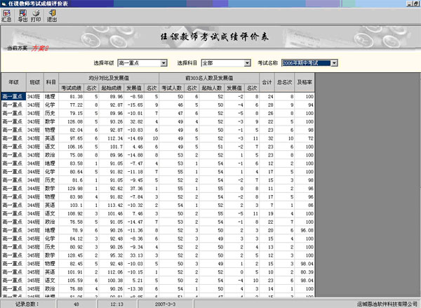 (總分等第統(tǒng)計界面)